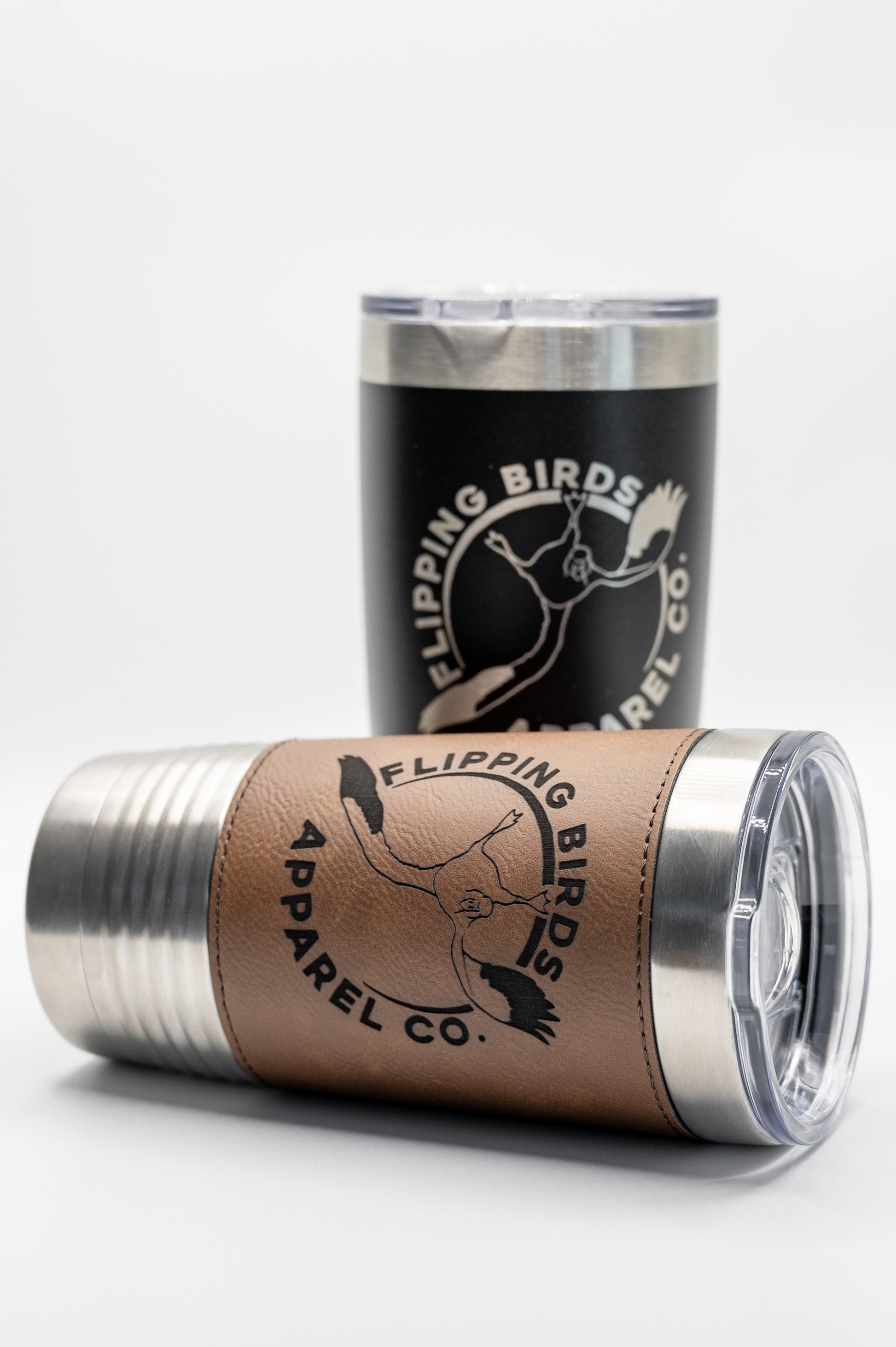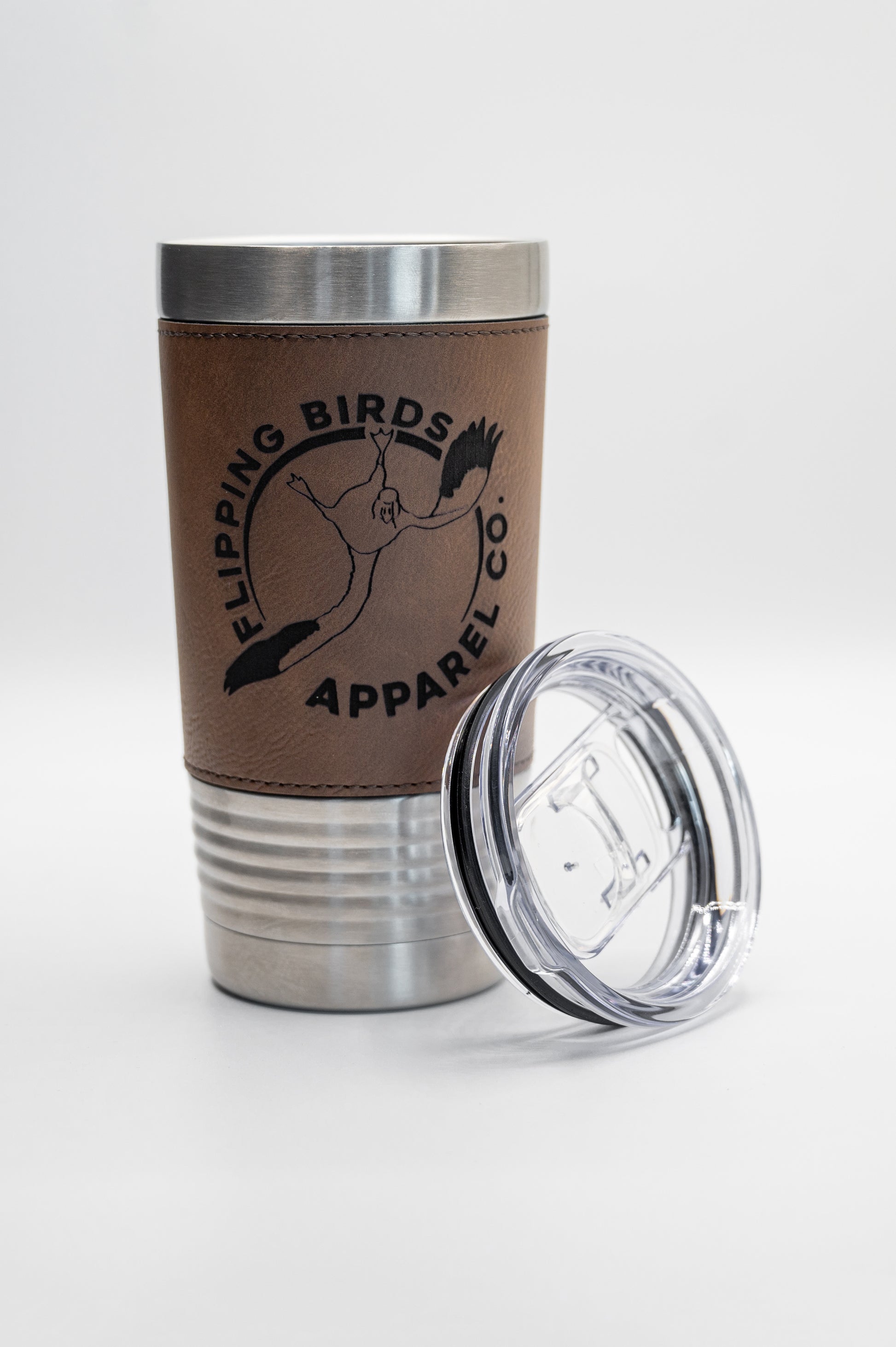 Stainless tumbler with a leather wrap! Very attractive tumbler with the iconic FBAC logo burnt into the leather wrap! Makes a perfect coffee cup, or water cup for home and office.